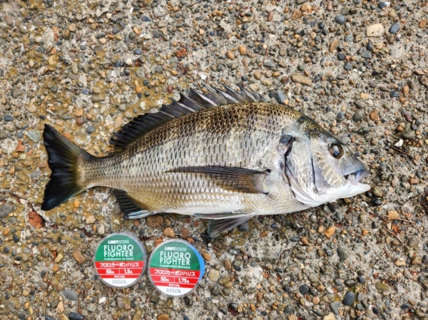 また通常リミテーションフロロファイター1.5号から始めるところ?!大型のクロダイ(チヌ)が出る釣り場のため敢えて1.75号をチョイスした。
